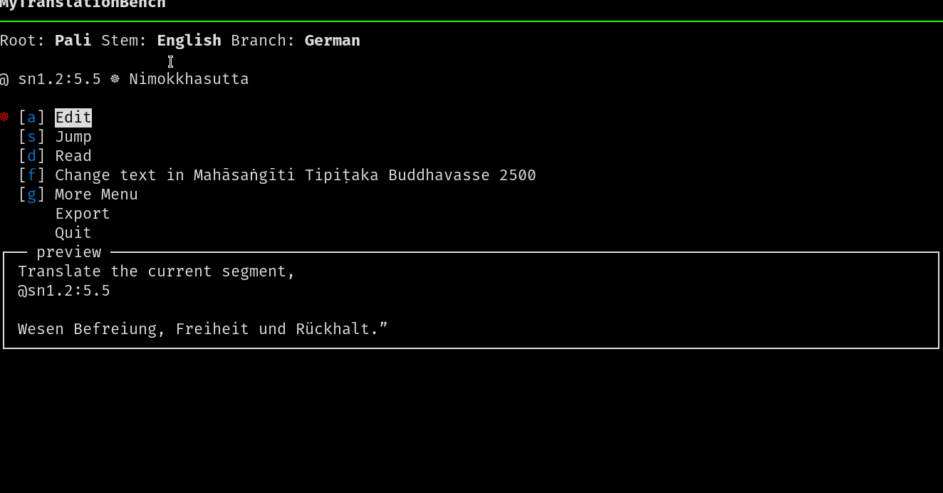 While being developed with the Pali Tipitaka in mind, Pali as its root language, English as an inntermediary and German as the target language it can be configured to work with different languages.